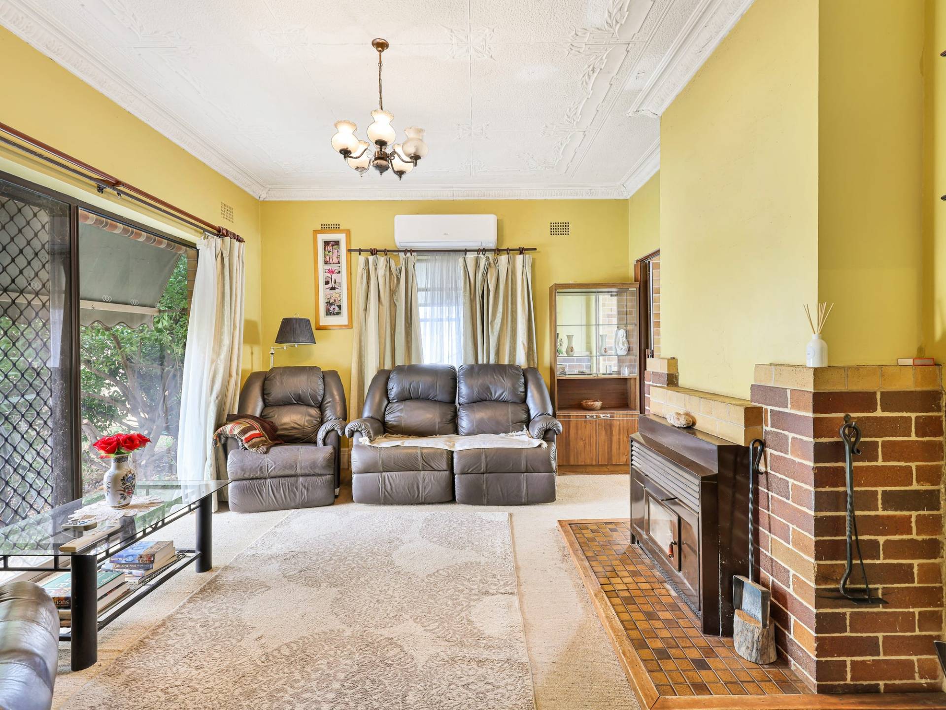 • Lounge room with wood fire and split system heating and cooling.