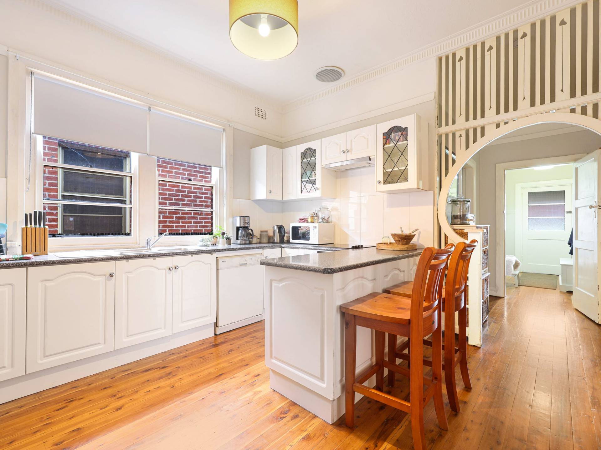 * The Modern kitchen is ideally positioned with dishwasher, breakfast bar