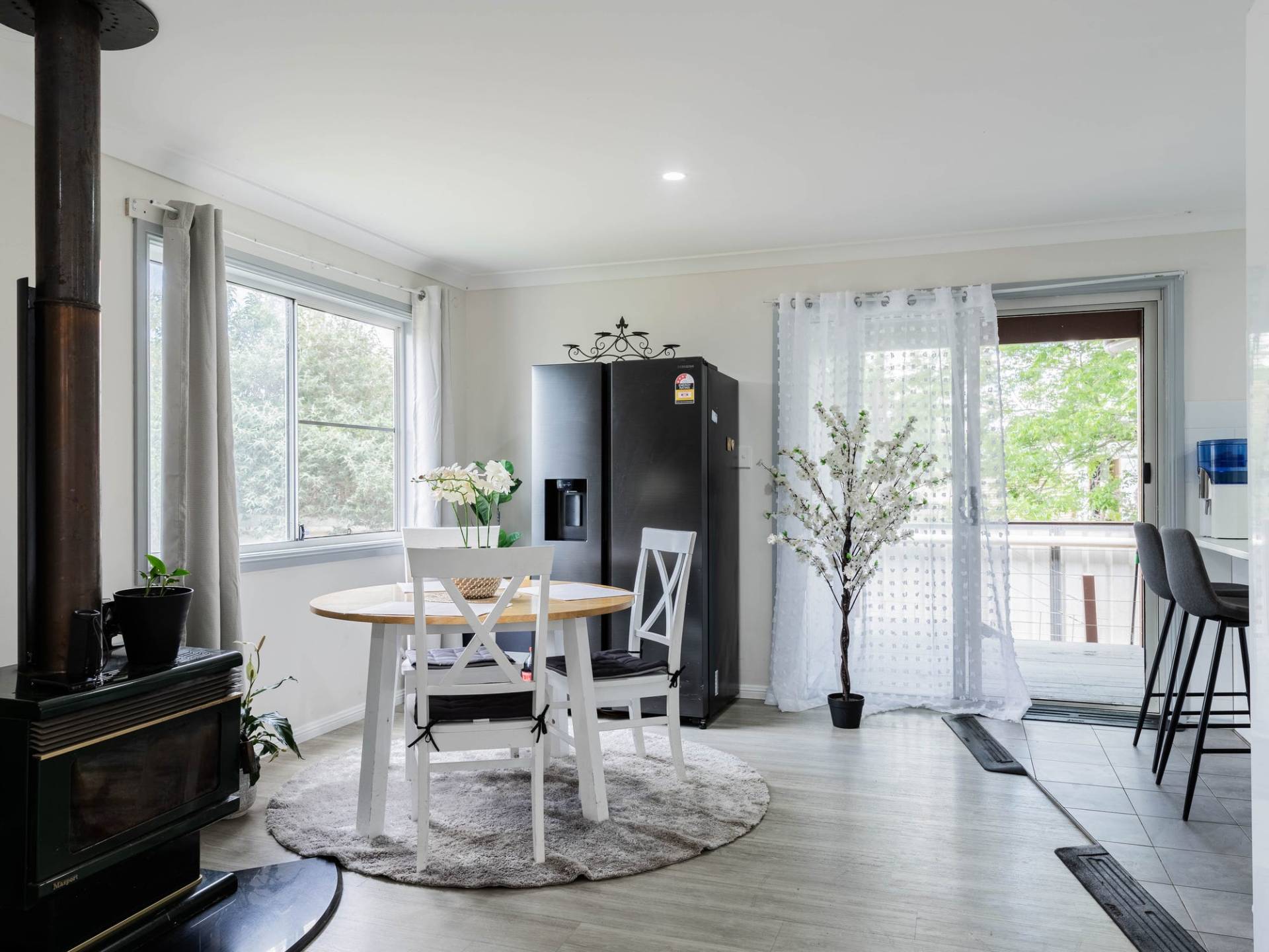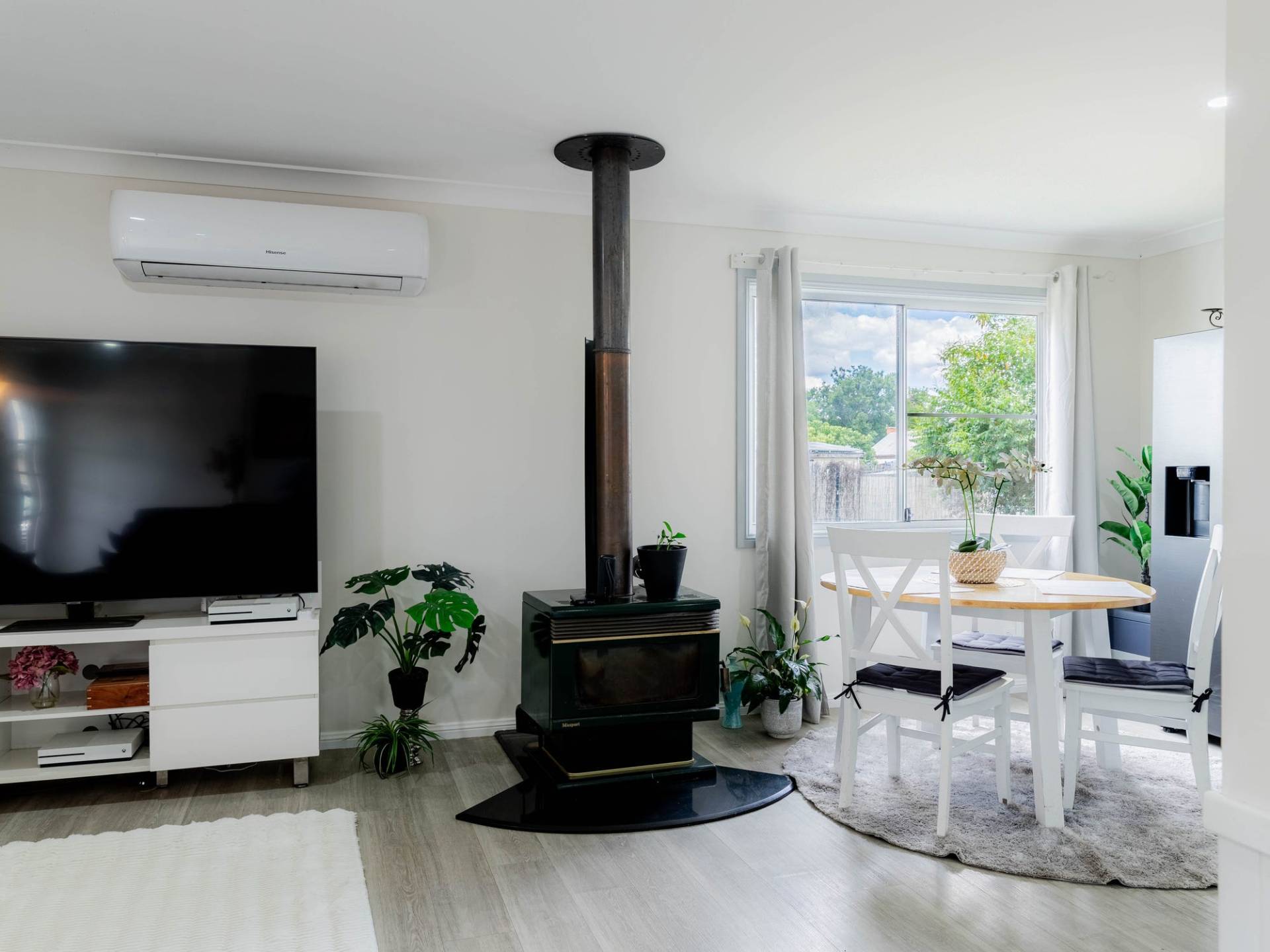• Split system air conditioning and wood heating in the lounge room.