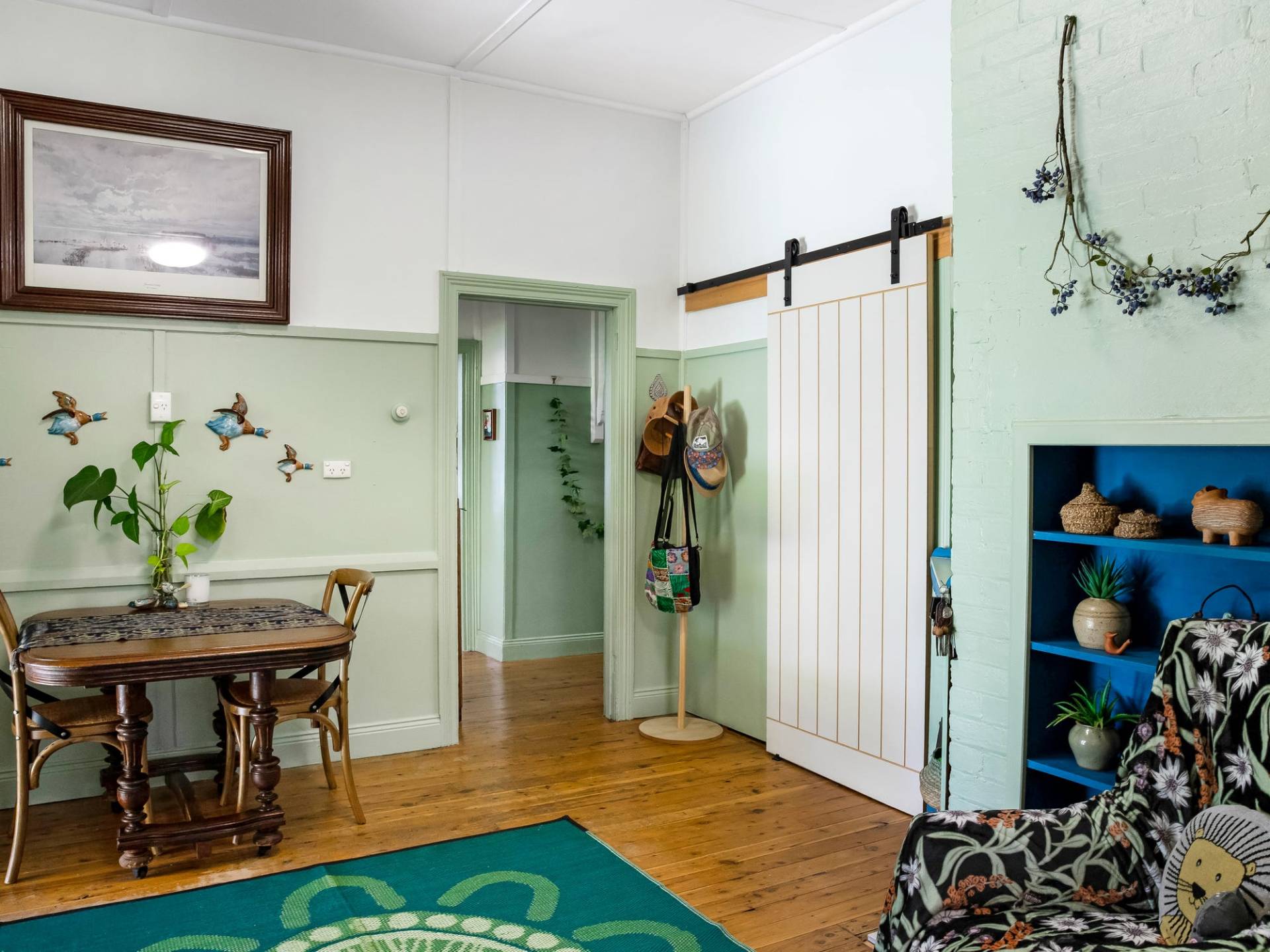 * Renovated bathroom is accessible from all points of the home with timber floors throughout and decorative fretwork in the hallway.