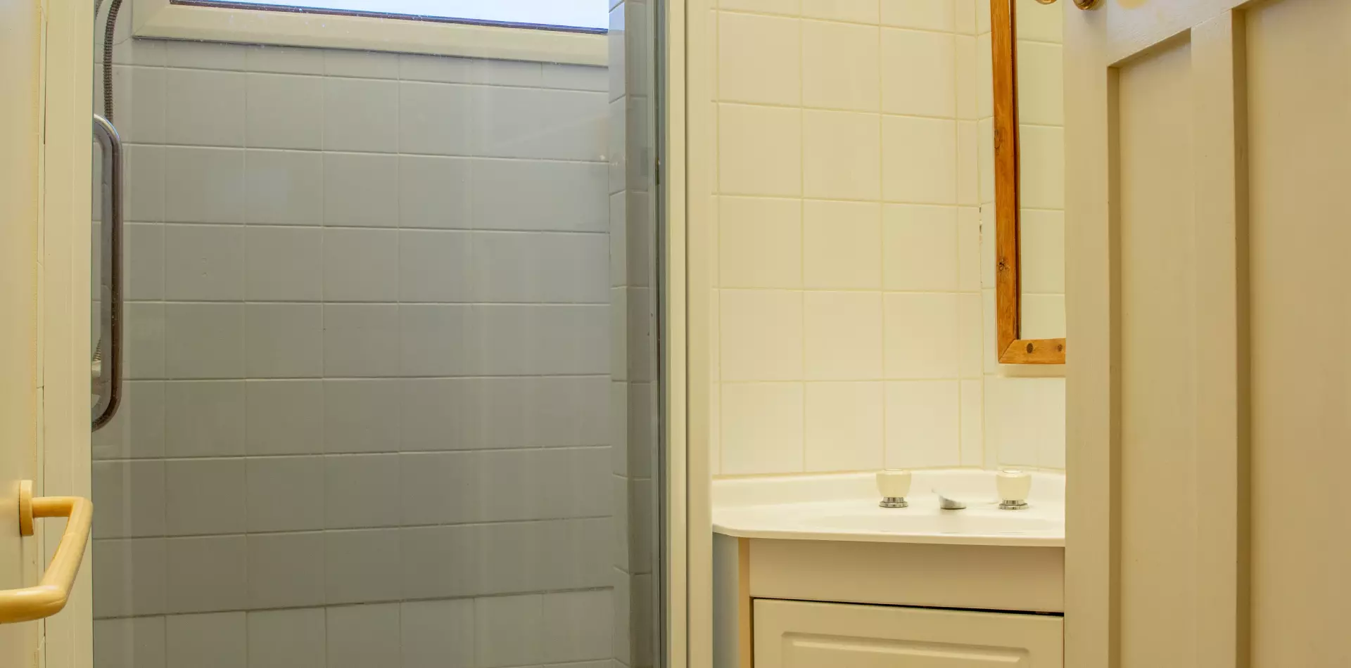 *The modern bathroom is positioned just off the hallway conveniently located near the bedrooms.