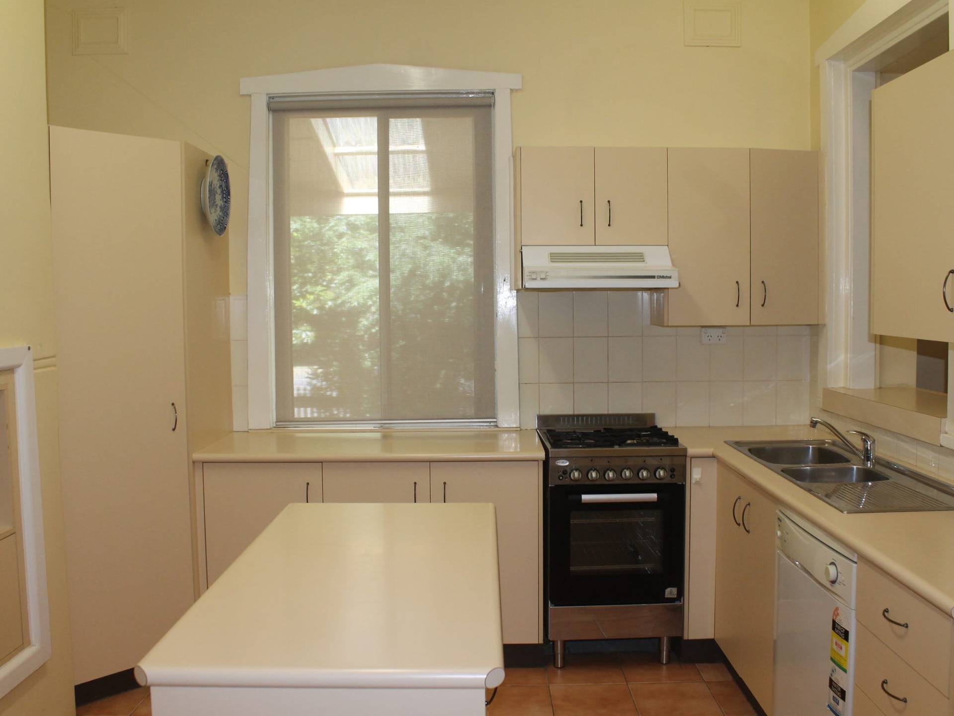 Spacious dining/ entertaining area with reverse cycle air conditioning overlooking the cottage garden. The Kitchen is modern with abundant cupboard space and dishwasher.