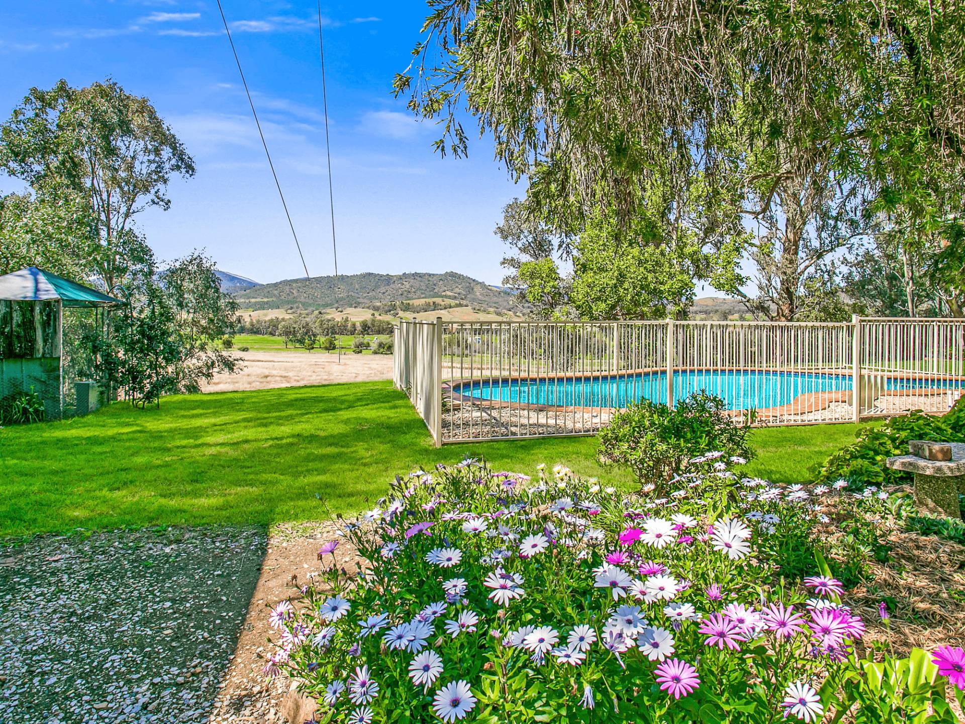 THIS HOME IS SURROUNDED BY ESTABLISHED TREES AND GARDENS COMPLETE WITH THE STUNNING INGROUND SALT WATER POOL..