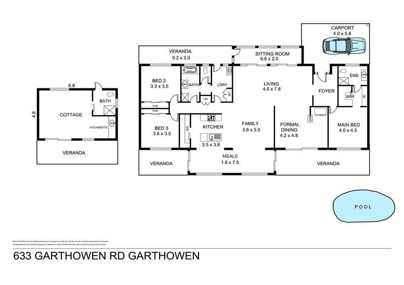 THREE GENEROUSLY SIZED BEDROOMS ALL HAVE BUILT INS, THE MAIN FEATURES A WALK IN ROBE AND MODERN ENSUITE. THE PROPERTY IS FURTHER ENHANCED WITH ADDITIONAL ACCOMMODATION BEING THE MULTI PURPOSE COTTAGE WITH ITS OWN KITCHEN AND BATHROOM.
