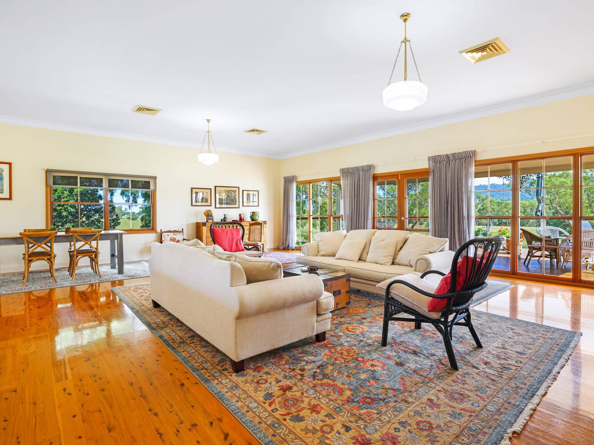 The homestead features large open plan living and dining which opens onto the entertaining deck overlooking the river, modern kitchen with a massive pantry, four large bedrooms with ensuite off main, office and second living area, main bathroom and powder room. Ducted heating and cooling throughout, reverse cycle airconditioning in the sitting room.