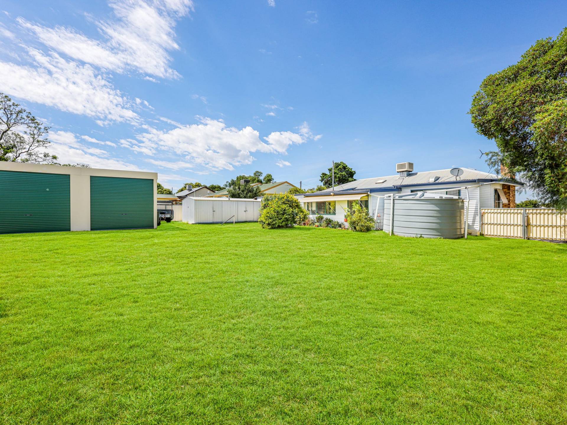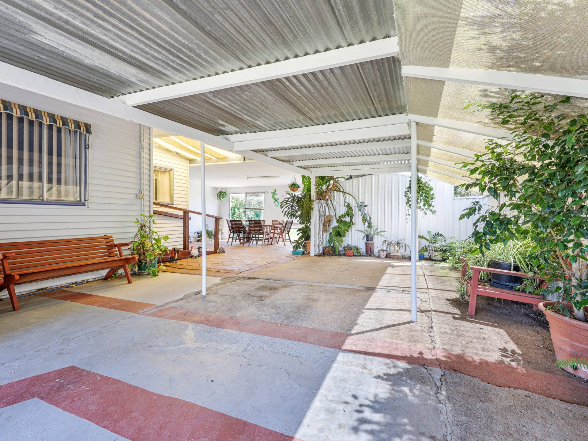 You will find an abundance of storage outside with double lock up garage, garden shed and fully covered carport with undercover entertaining area. The kitchen is central to all living areas and features electric stove. Bathroom with separate bath and shower is conveniently located to the bedrooms.