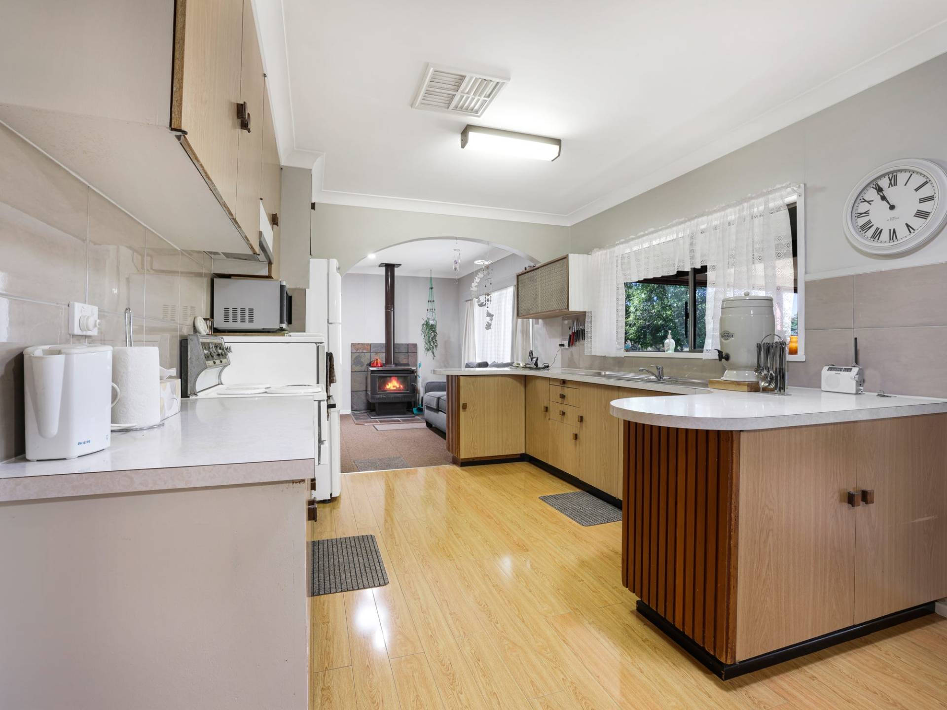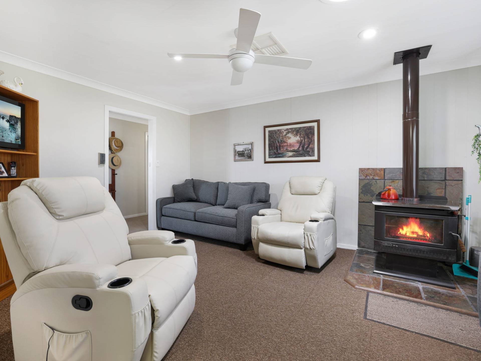 * Storage is ideal in this home with the triple linen cupboard in the hallway, heating and cooling are provided with ducted evaporative cooling, reverse cycle air conditioner and also a wood fire.
